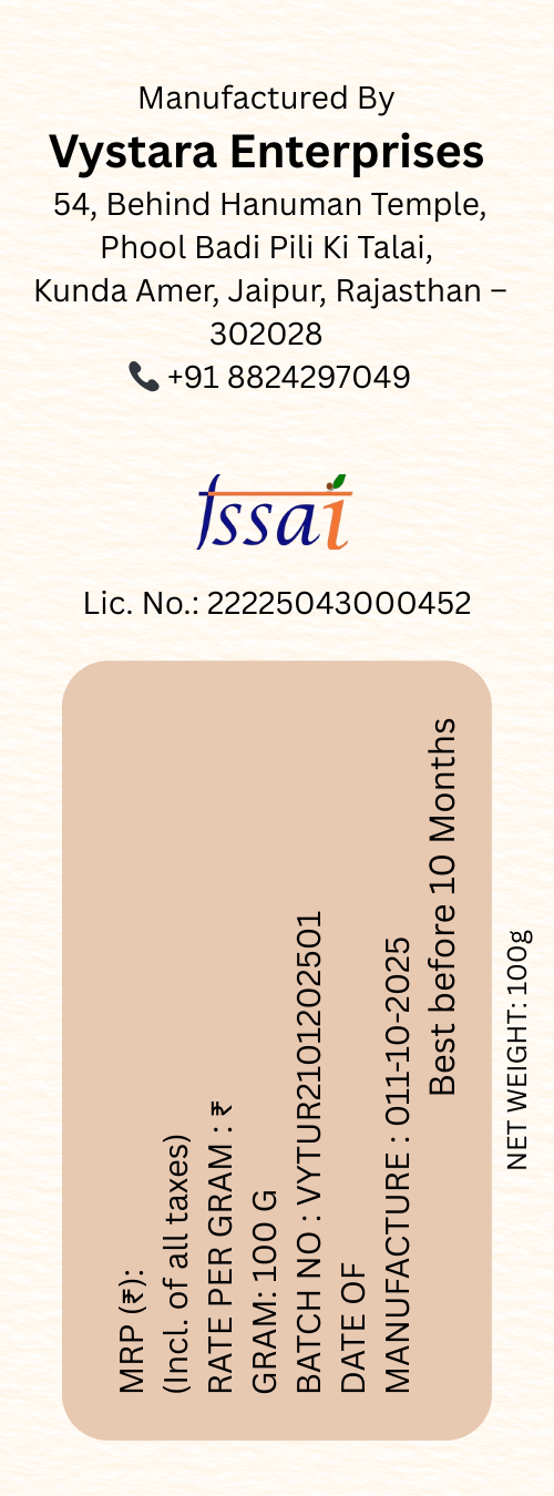 Protect and purify your skin naturally with Vystara Enterprises Neem & Tulsi Powder, made from premium neem leaves and holy basil, finely processed to retain their antibacterial and detoxifying properties. This herbal blend helps fight acne, control excess oil, and calm irritated skin.